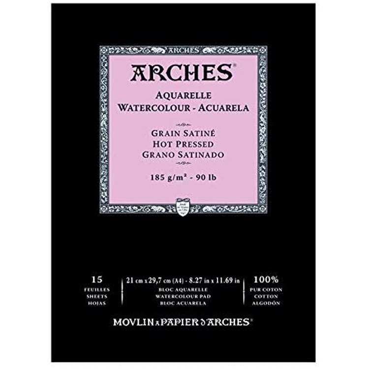 ARCHES AQUARELLE WATERCOLOUR - ACUARELA- GRAIN FIN- HOT PRESSED 185 g/m 15 SHEETS