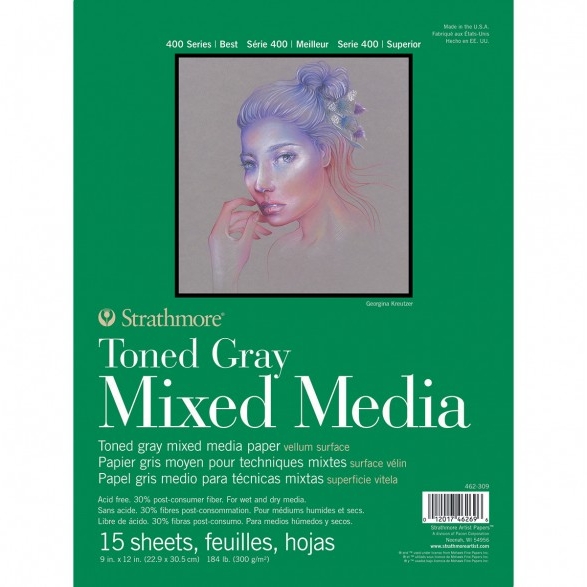 STRATHMORE 400 SERIES TONED GRAY MIXED MEDIA , GLUE BOUND , 300 g/m , 22,9 x30,5 cm 15 sheets