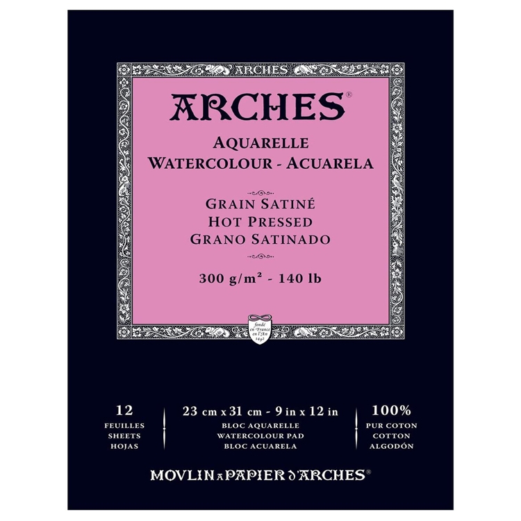 ARCHES AQUARELLE WATERCOLOUR - ACUARELA- GRAIN FIN- HOT PRESSED 300 g/m 12 SHEETS