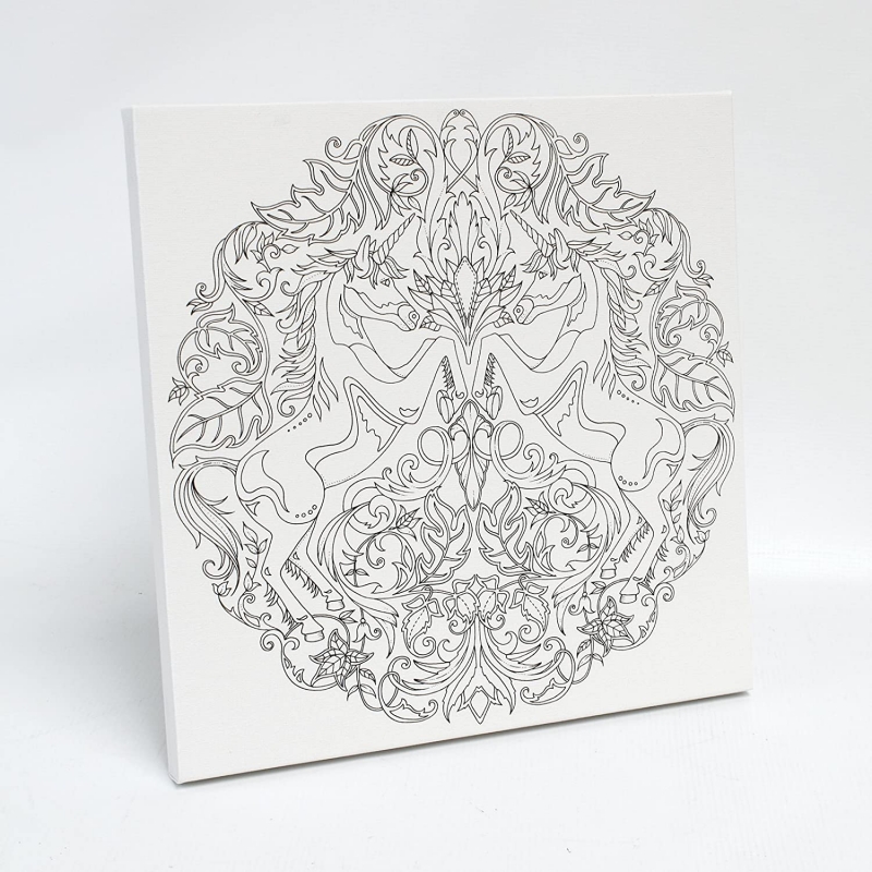Unicorn from the enchanted forest collection by Johanna Basford. Ready to colour on Canvas with paint or markers.