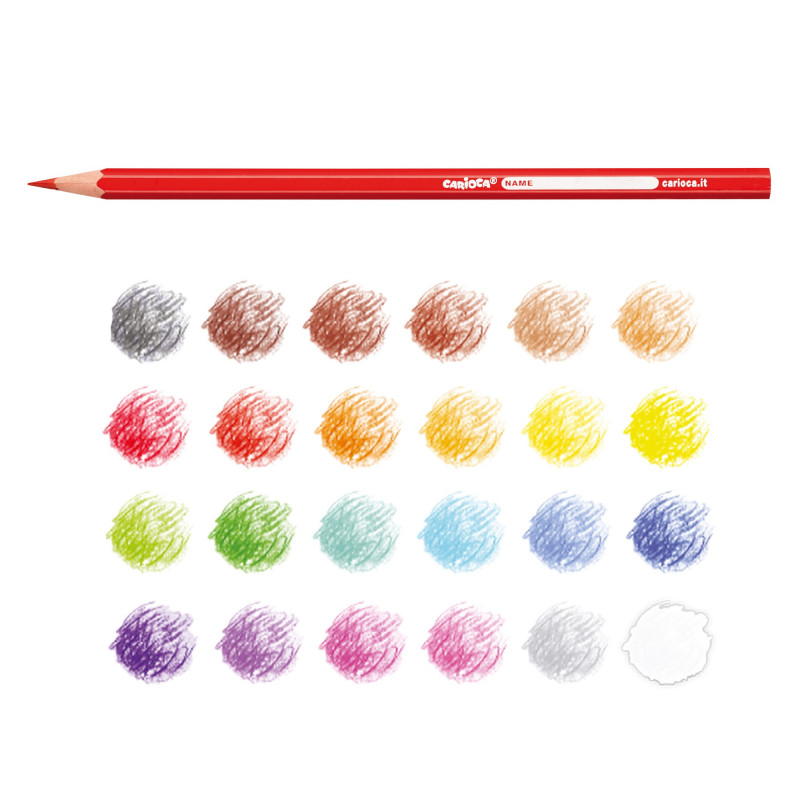 Box of 24 CARIOCA brilliant and opaque colors! Wood colored pencils with lacqueres body.