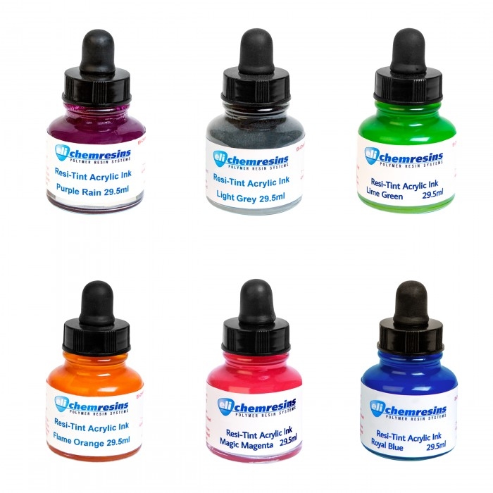 A selection of 18 bright and beautiful resi-TINT acrylic art pigments which work perfectly with our clear art resins. You will only require a very small amount, approx. 1 part pigment per 1000 parts resin to transform your resin art with vibrant colour.