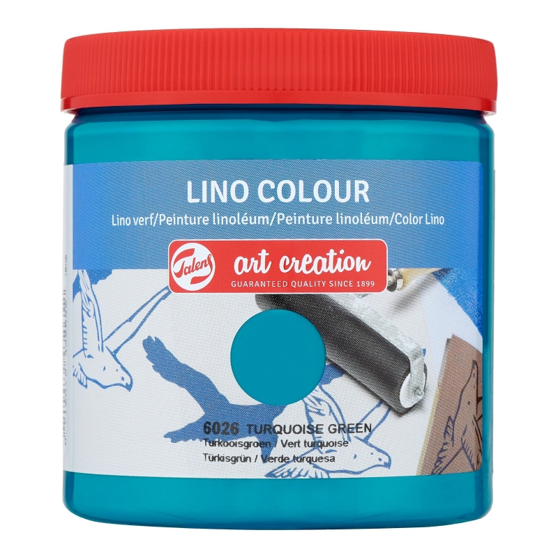 A water-based linoleum paint for Lino printing. The paint has an excellent covering capacity, and is highly pigmented and lightfast. Use a smooth roller to apply the paint to the stamp.