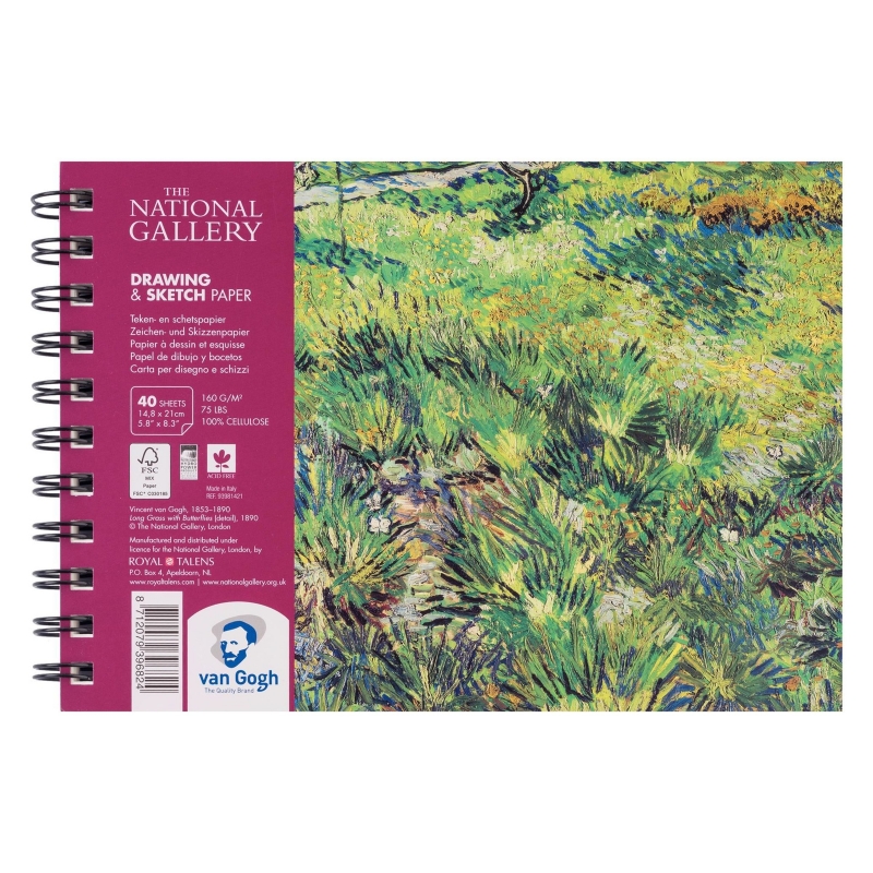 In partnership with The National Gallery in London, this brilliant set of high-quality watercolours features cover art from Vincent Van Gogh's 1890 painting titled "Long Grass with Butterflies". Carefully selected paper to be the best choice when working with Van Gogh pencils and other dry media. This spiral bound paper pad contains 40 sheets of textured paper. Paper weight: 75lb. / 160g.