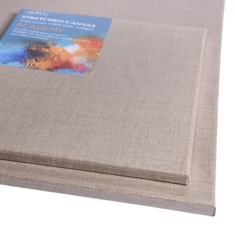 Mesco Academy quality Stretched Canvas is 100% LINEN / 290gsm and is suitable for use with oil, acrylic and other mediums.