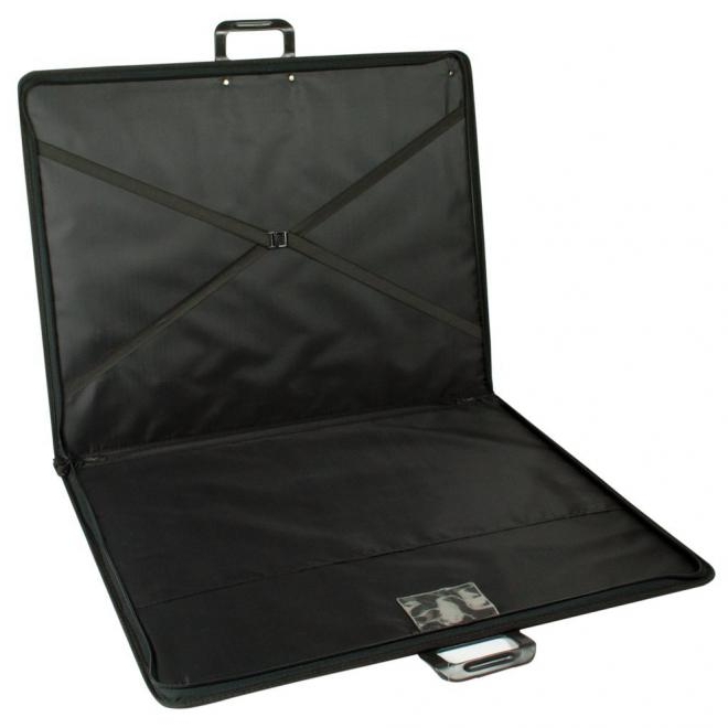 Carrying shoulder strap and carrying handle. Includes interior pocket and strap that keep artwork organised.The 3/4 zip closure allows folio to open flat if required. Please note this portfolio has no ring bind mechanism inside.