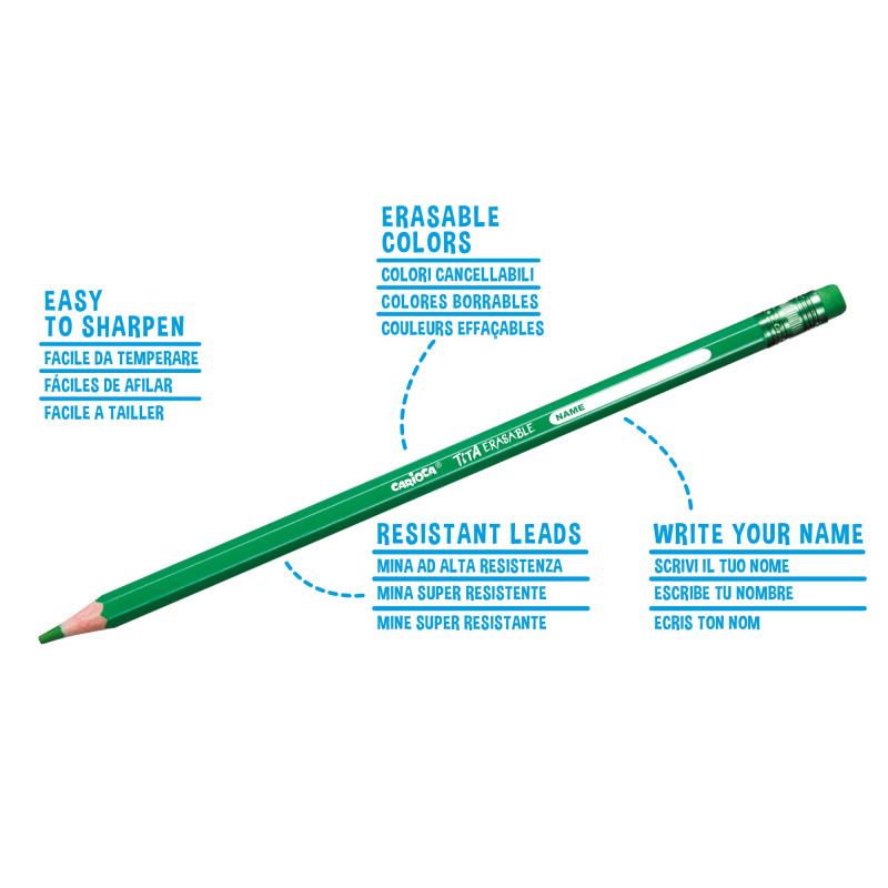 Box of 24 CARIOCA TITA Erasable Resin Colored Pencils hexagonal body.