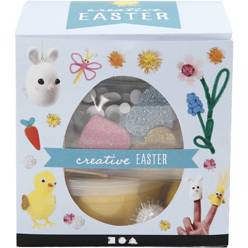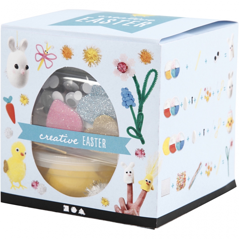 Lots of different creative materials for imaginative, easy Easter decorations. Inspiration is included in the box