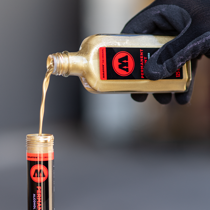 The ink of the Permanent Paint refills is highly-opaque and permanent. Moreover, it is perfectly suitable for an application on rough surfaces with the Dripstick™ Rollerball. Besides plain colors, there are also metallic color shades.