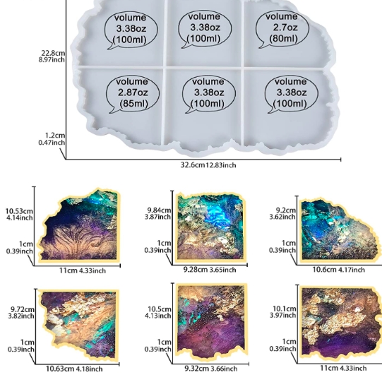 Puzzle agate cut tray for resin casting or acrylic fluid art painting. The molds are made out of flexible, sturdy and durable silicone.