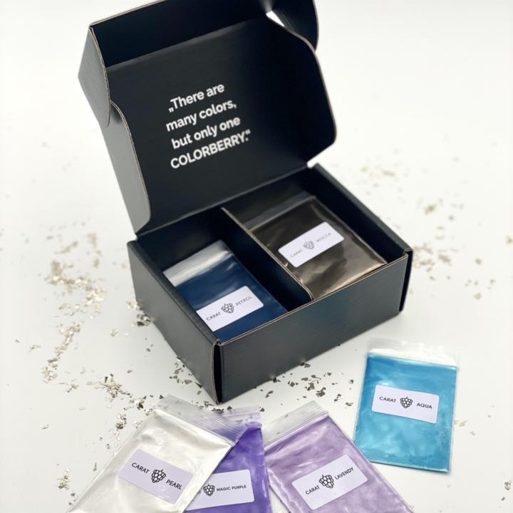 30 shades of CARAT POWDERS in one box, including the new AQUA and FOREST COLORS. Test out all the shades and start pouring.
