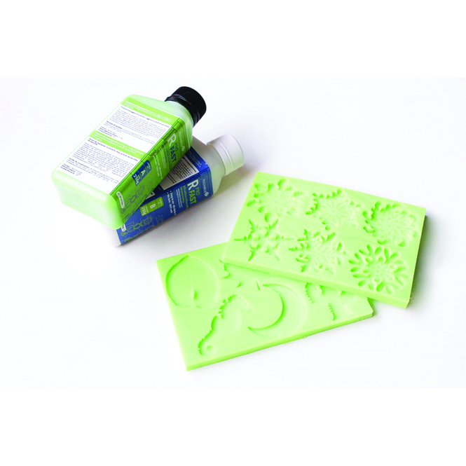 A bi-component addition rubber (base platinum catalyst) of acid green color that thanks to its low viscosity and high elasticity allows copying faithfully even the smallest details, has good resistance to tearing, great resistance to high temperatures and aging and an excellent non-stick effect.