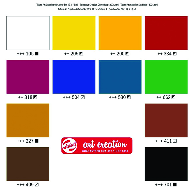 Talens Art Creation oil colour is a versatile type of paint which you can use both thin and very pasty. The paint is made from pigments and vegetable oil and gives intense colours. These oil colours are suitable for all oil painting techniques, such as 'wet-into-wet', layered painting and glazing