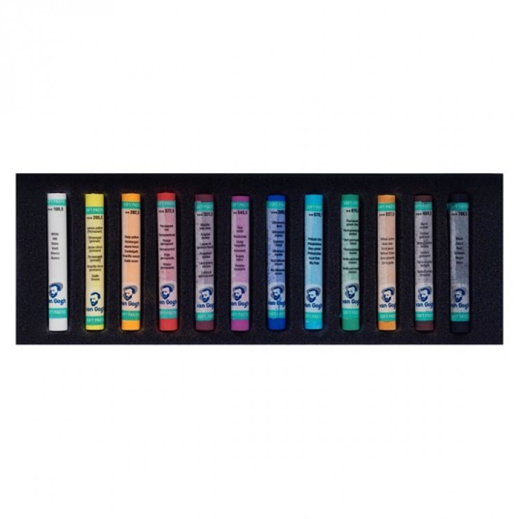 Van Gogh slim, round sticks are ideal for using the edges for detail work or on its side for broad area coverage. Composed of high-quality pigments and kaolin clay for a formulation with easy colour transfer, a velvety appearance, and made to be less likely to crumble.