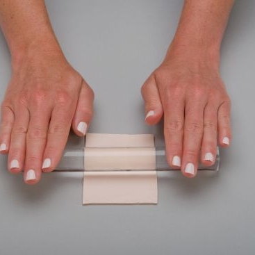 We designed our polymer clay acrylic roller to be simple and easy to use. Before you begin rolling your polymer clay, make sure you have a protective covering over your work surface. This is vital for maintaining your work surface's integrity — unbaked clay has properties that can damage furniture and surface finishes. We recommend working on the Sculpey Tools™ Oven-Safe Work Mat, wax paper or a baking sheet.
