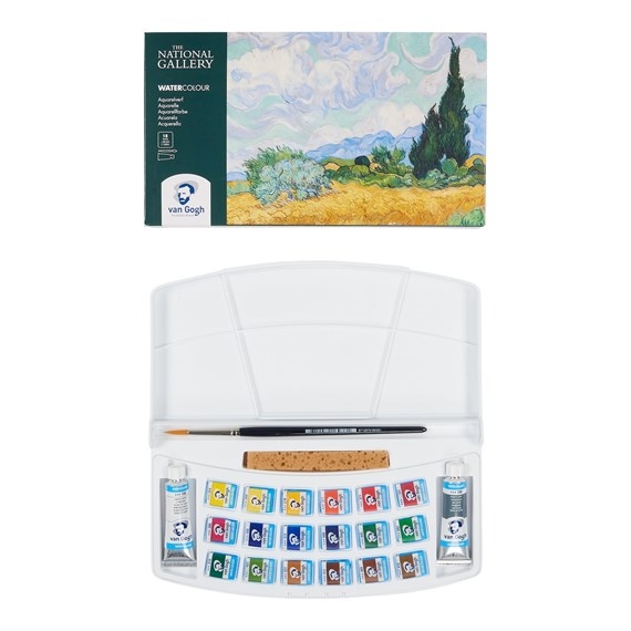 In partnership with The National Gallery in London, this brilliant set of high-quality watercolours covers Vincent Van Gogh's 1889 painting titled "A Wheatfield, with Cypresses".