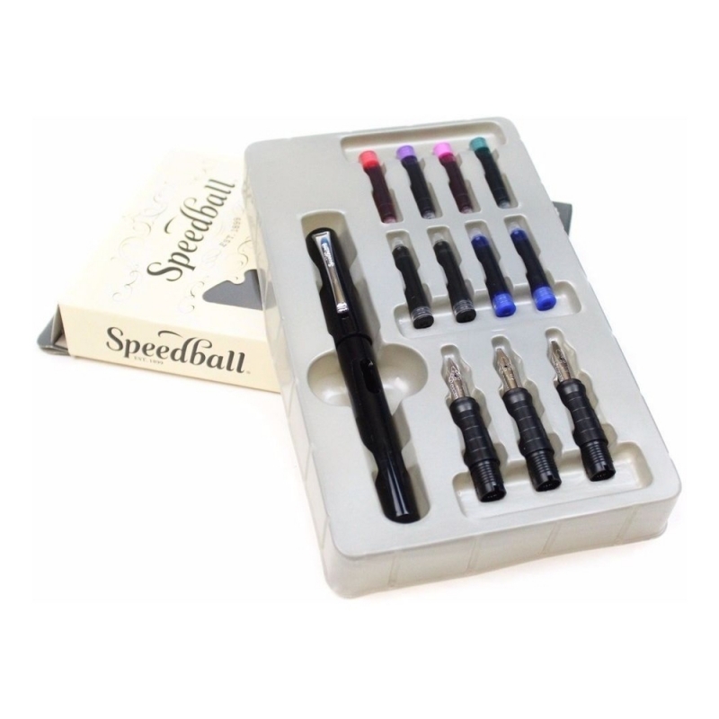 Featuring precisely-machined nibs designed with a rounded tip, a lightweight, ergonomic construction, & a quality, free-flowing ink, Speedball Calligraphy Fountain Pens provide a superior writing experience that allows artists to create beautiful results easily
