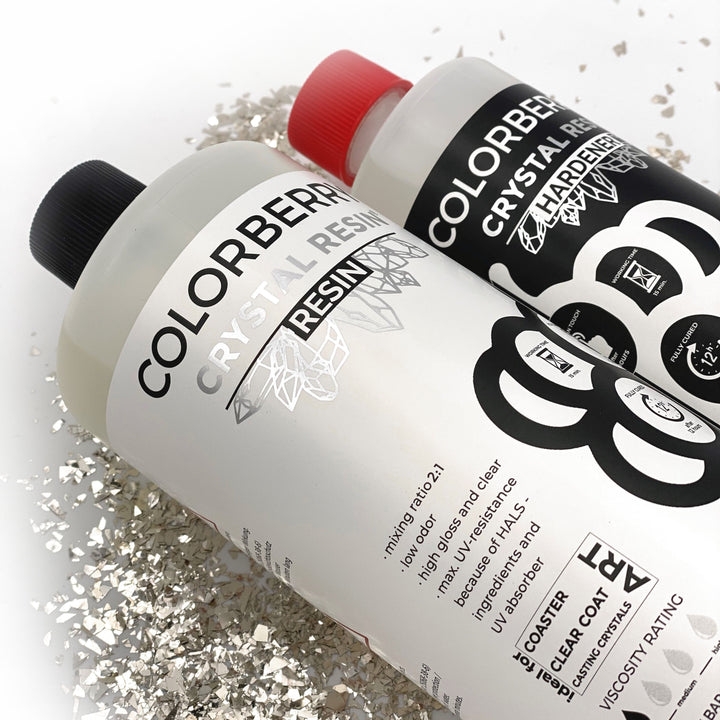 Best to use for little creative projects such as coasters, earrings, trays or casting small crystals. The resin has a low viscosity so you have almost no bubbles after mixing. After tempering (4-5 hours under the heat lamp) they are heat resistent up to 80°C.