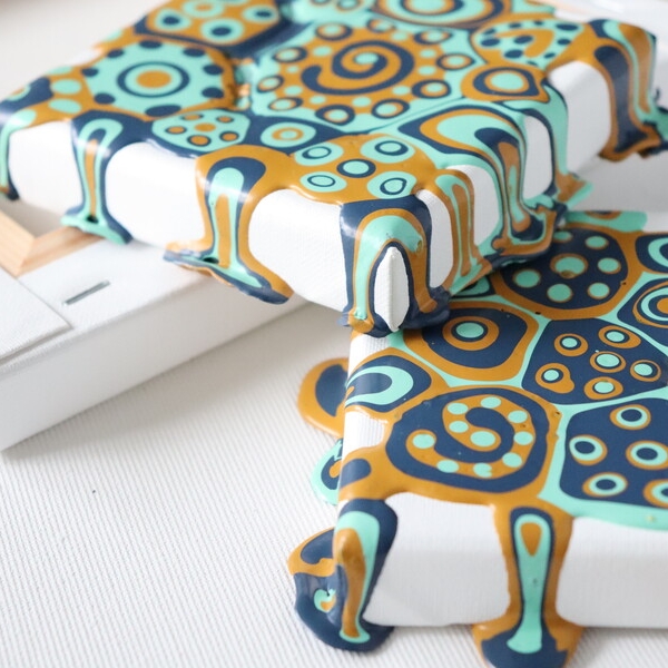 You can even use pouring techniques by moving around the surface after applying the paint to create interesting dripping effects. There is no wrong way to blob paint, so be creative and have fun with it!