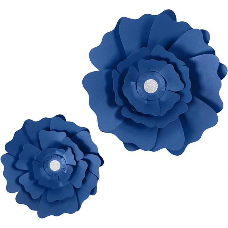 A set for 2 evenly-sized flowers, both containing different parts, stamped in structured card. Detailed instructions and double-sided tape included.