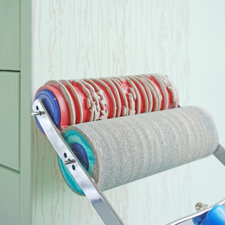 After choosing the pattern, assemble the rubber roller with its sponge roller and start decorating, with top-bottom and left-right movements.