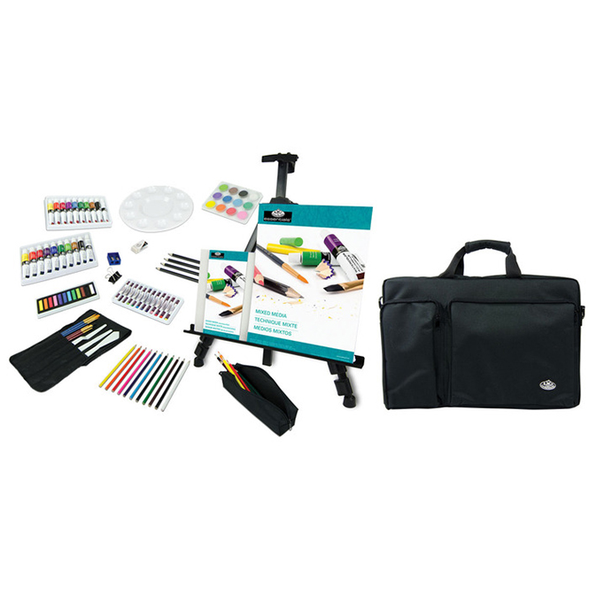 Essentials ™ Mixed Media Travel Artist Sets contain a wide variety of mediums and art tools that fit neatly in the deluxe carrying case for easy storage and transport. Sets contain a large collection of premium art supplies, a foldable easel and an artist’s bag.
