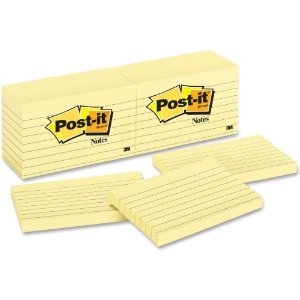 Post-it® Notes in 3 in x 5 in size are great for keeping track of research projects. Canary Yellow is familiar and captures people's attention. These pads are lined-keeping your message straight. 12 Pads/Pack.