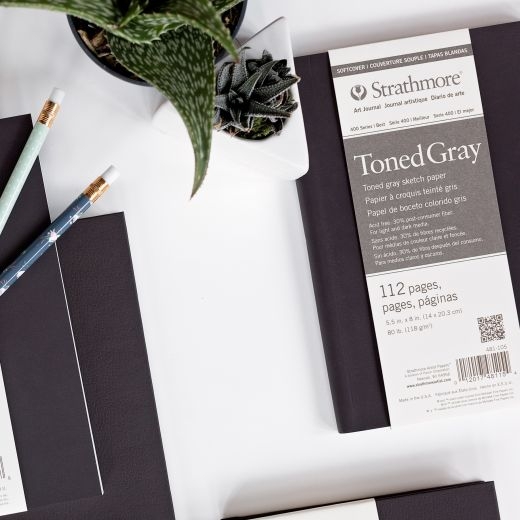 This sketch paper is ideal for light and dark media. 100% recycled, contains 30% post-consumer fiber, acid free.