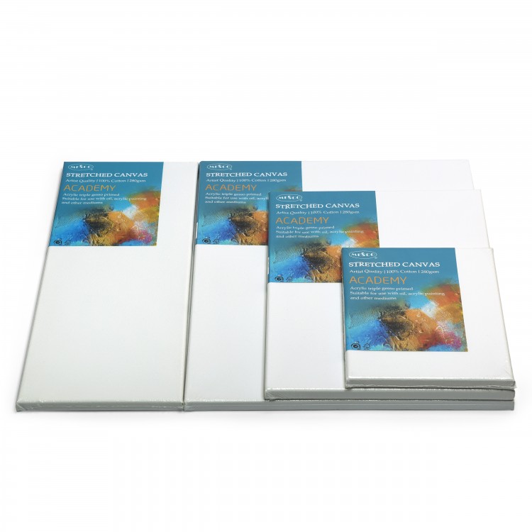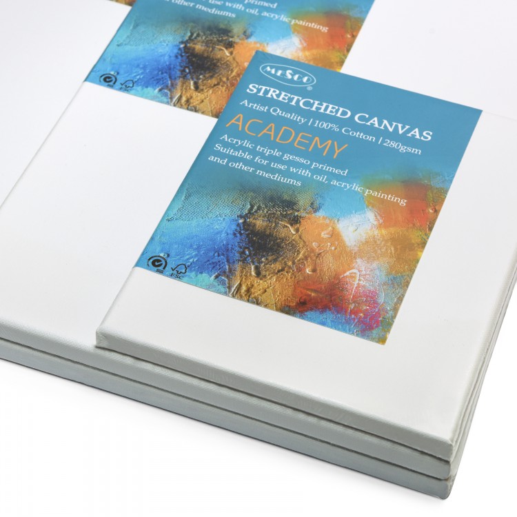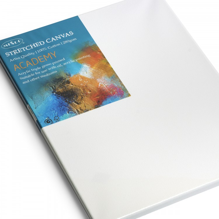 Mesco Academy Stretched Canvas that is 100% Cotton /280gsm with 1.8cm frame edge and is suitable for use with oil, acrylic and other mediums