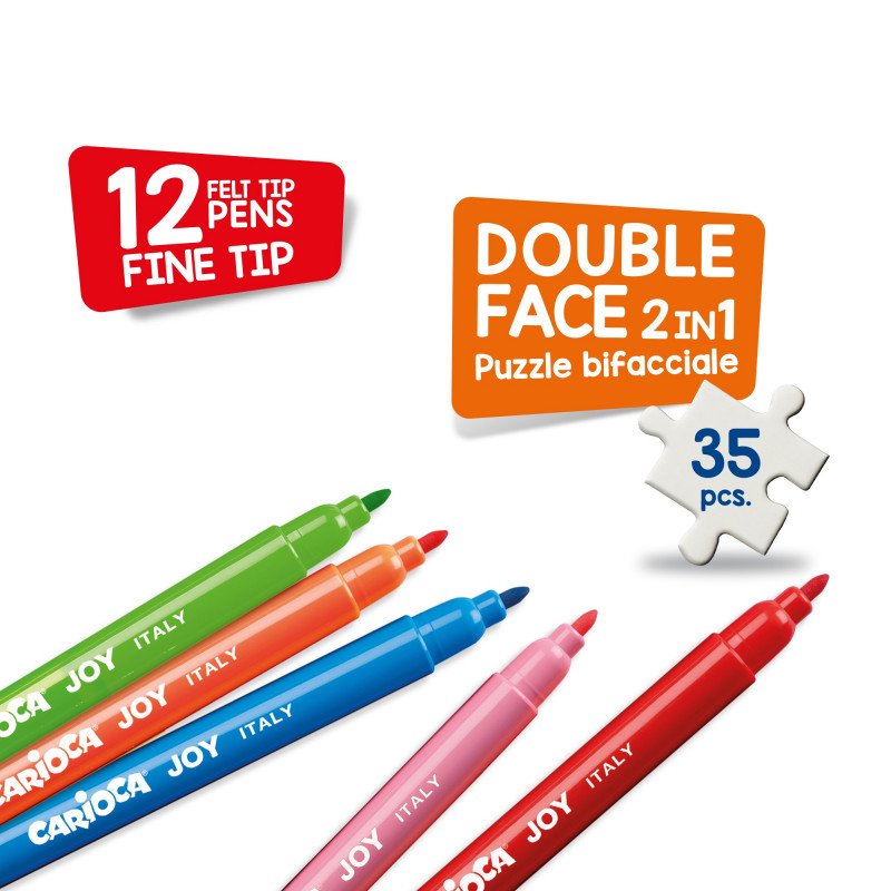 35 pieces cardboard colouring puzzle + 12 felt tip pens ADVENTURES design
