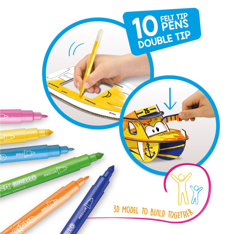 Pop-up model for coloring and construction as a pen holder Contains 10 felt-tip pens Non-toxic ink, super washable, gluten free.